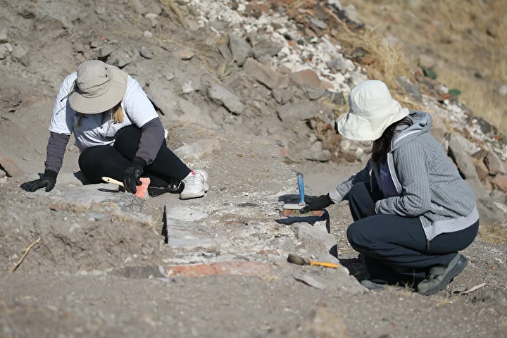 Nisan ayı itibarıyla sahadaki çalışmalara başladıklarını ve aralık ayı sonuna kadar da devam edeceklerini anlatan Arslan, “Şu anda sahada 5 farklı noktada kazı çalışmalarımız devam ediyor ve bu alanlardan belki de en önemlilerinden birisini Selçuklu mezarlığı oluşturmakta. İlk kez 2021 yılı kazı sezonunda burayı açmıştık, yüzeydeki bazı buluntulardan ve verilerden hareketle buranın bir mezarlık olabileceğini düşünmüş ve yaptığımız kazılar sonucunda hakikaten bir mezarlığı ortaya çıkarmıştık.” dedi.